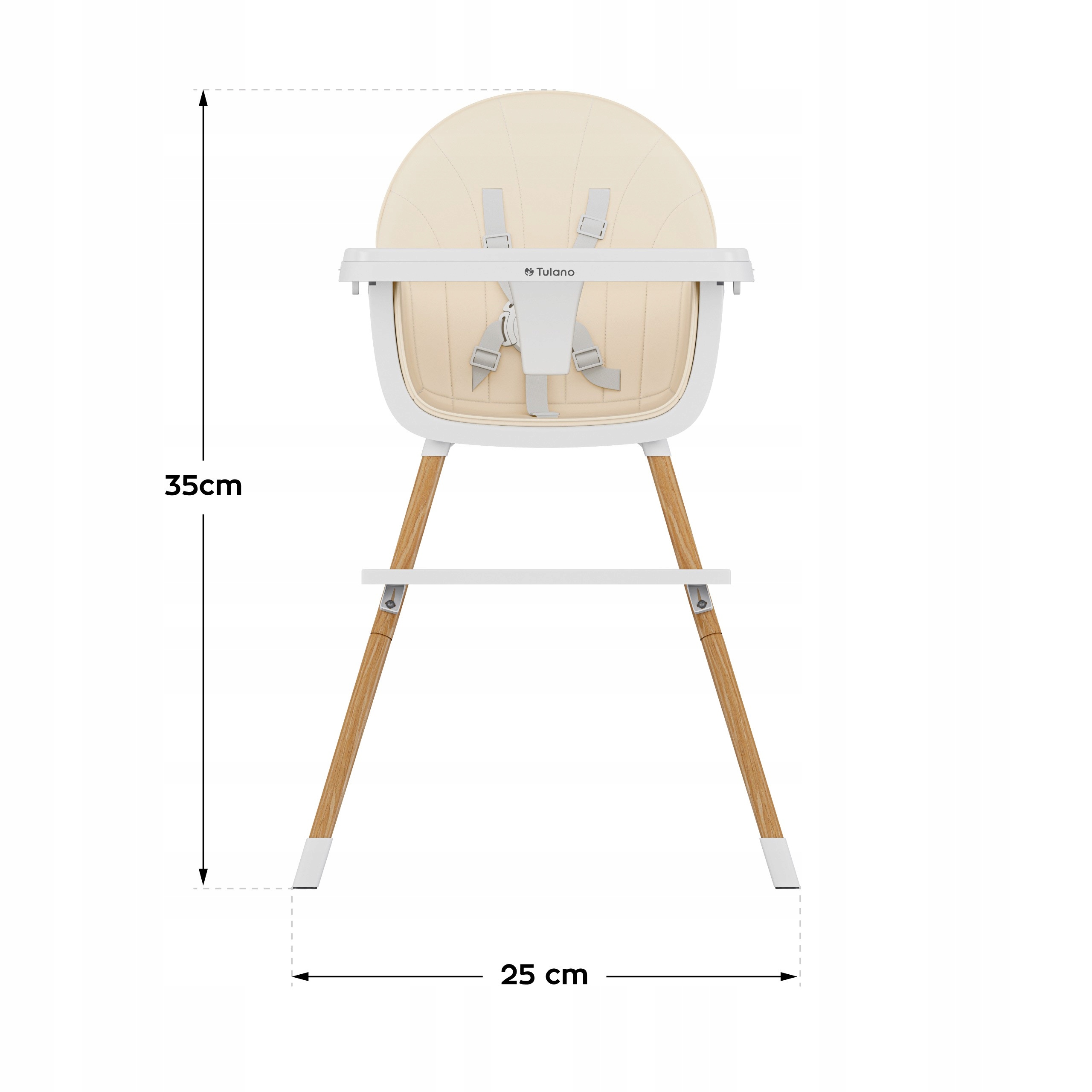 - The chair is ideal for children from the moment of sitting up to 25 kg, thanks to the possibility of shortening the legs <