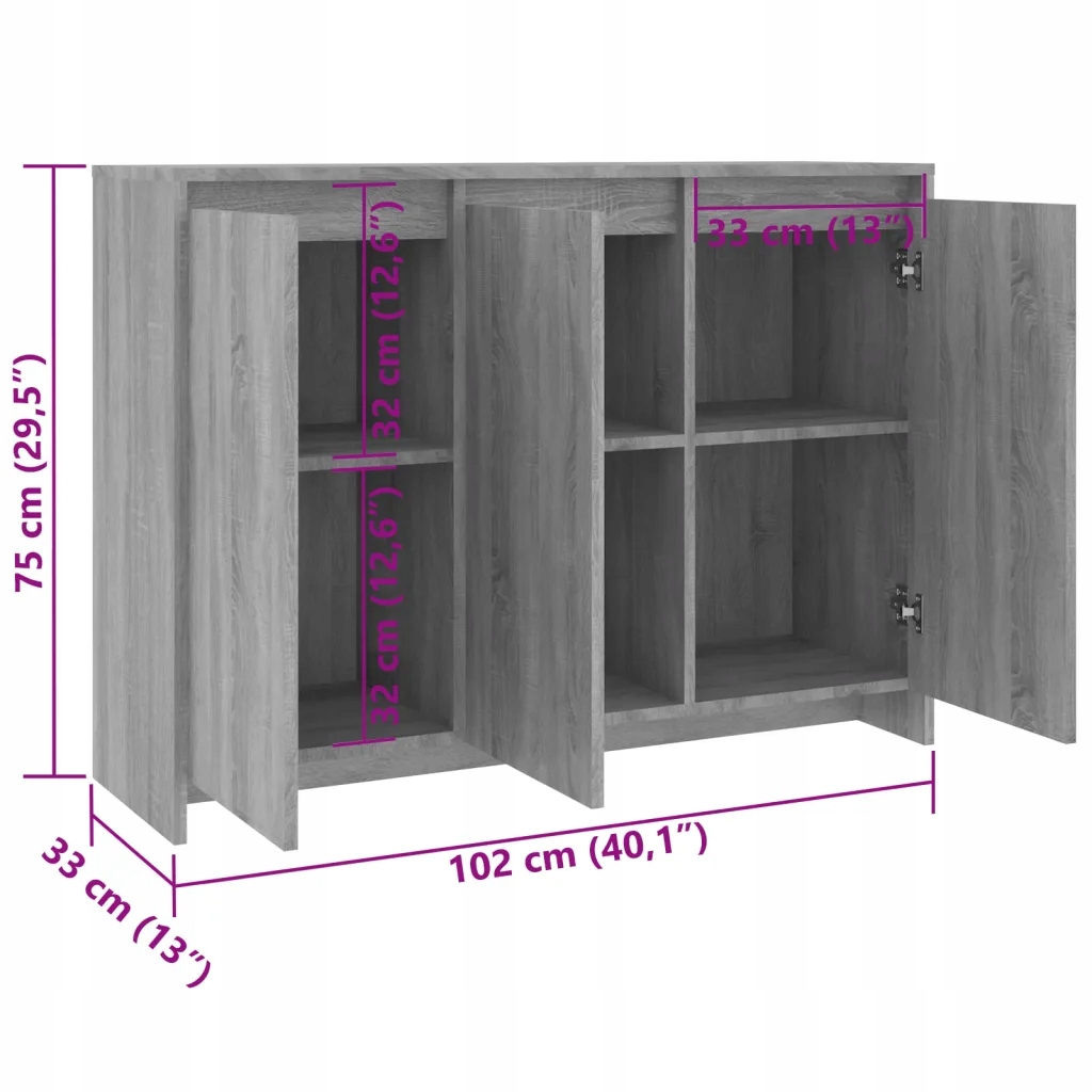 Шафа бокова 3-дверна дуб сонома сірий 102x33x75 см