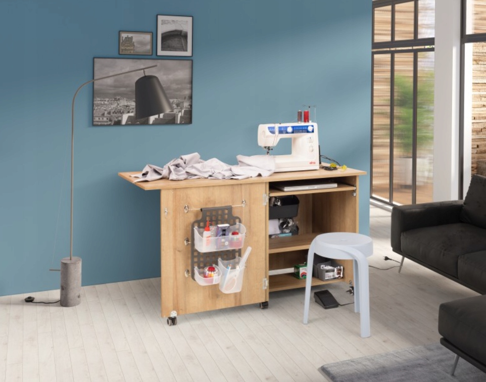 Багатофункціональну шафу можна використовувати як письмовий стіл або шафу, наприклад, для швейної машини.