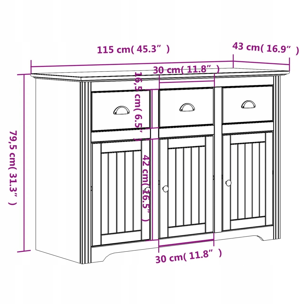 - Розміри комода: 115 х 43 х 79,5 см (довжина х ширина) x висота)