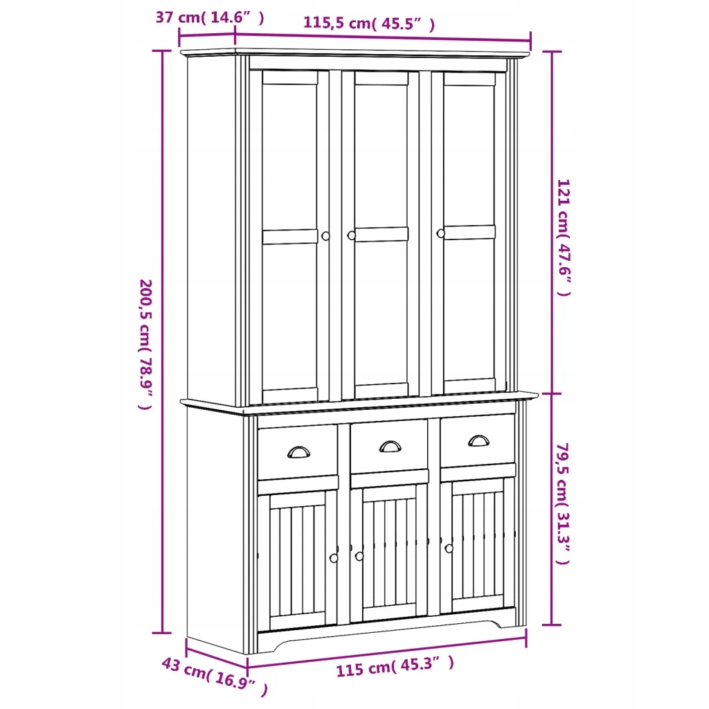 - Загальні розміри: 115,5 х 43 х 200,5 см (довжина х ширина х висота)