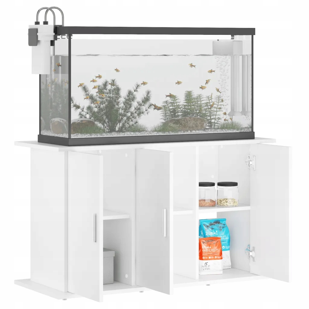- Функція зберігання: шафа під акваріум пропонує багато місця для ваших речей. Стільниця — ідеальне місце для розміщення акваріума, а 6 відділень, захованих за дверцятами, стануть зручним місцем для зберігання корму для риб, сачка, дезінфікуючих засобів, кондиціонера для води та інших речей.