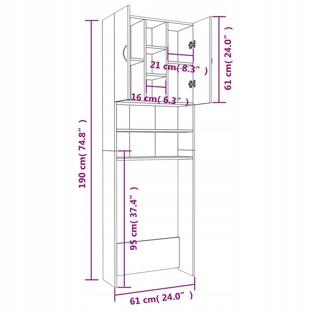 Ця шафа для вбудованої пральної машини дозволить вам створити додатковий простір для зберігання речей і оптимально використовувати простір у ванній кімнаті. Прості лінії та елегантний зовнішній вигляд дозволяють меблям ідеально вписуватися в декор вашої ванної кімнати. Ця шафа для ванної кімнати міцна і міцна. 2 дверцята та 9 відділень забезпечують достатньо місця для зберігання та організації білизни, засобів для чищення, туалетних приналежностей та інших речей, які знаходяться під рукою. Крім того, цей предмет меблів можна легко чистити вологою ганчіркою.