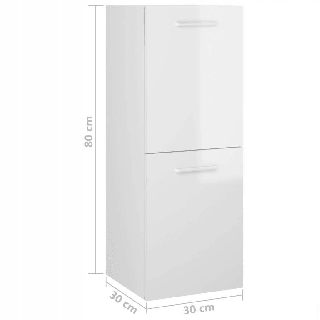 Шафка для ванної кімнати, біла, глянець, 30x30x80 см