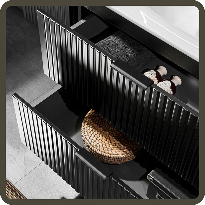 Вертикально фрезеровані фасади надають меблям унікальний вигляд, додаючи елегантності та витонченості. Саме ці деталі відрізняють колекцію, привертають увагу та надають інтер’єру неповторності.