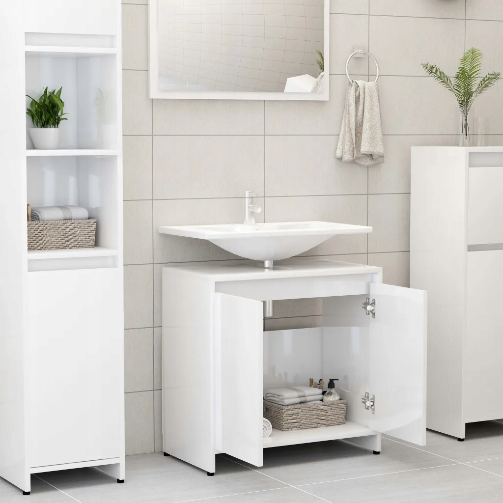 Шафа для ванної, біла з блиском, 60x33x61 см