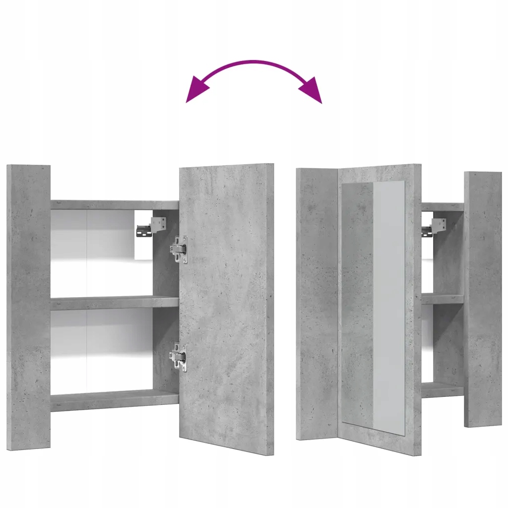 Шафа для ванної кімнати з дзеркалом і світлодіодом, сірий бетон, 40x12x45 см