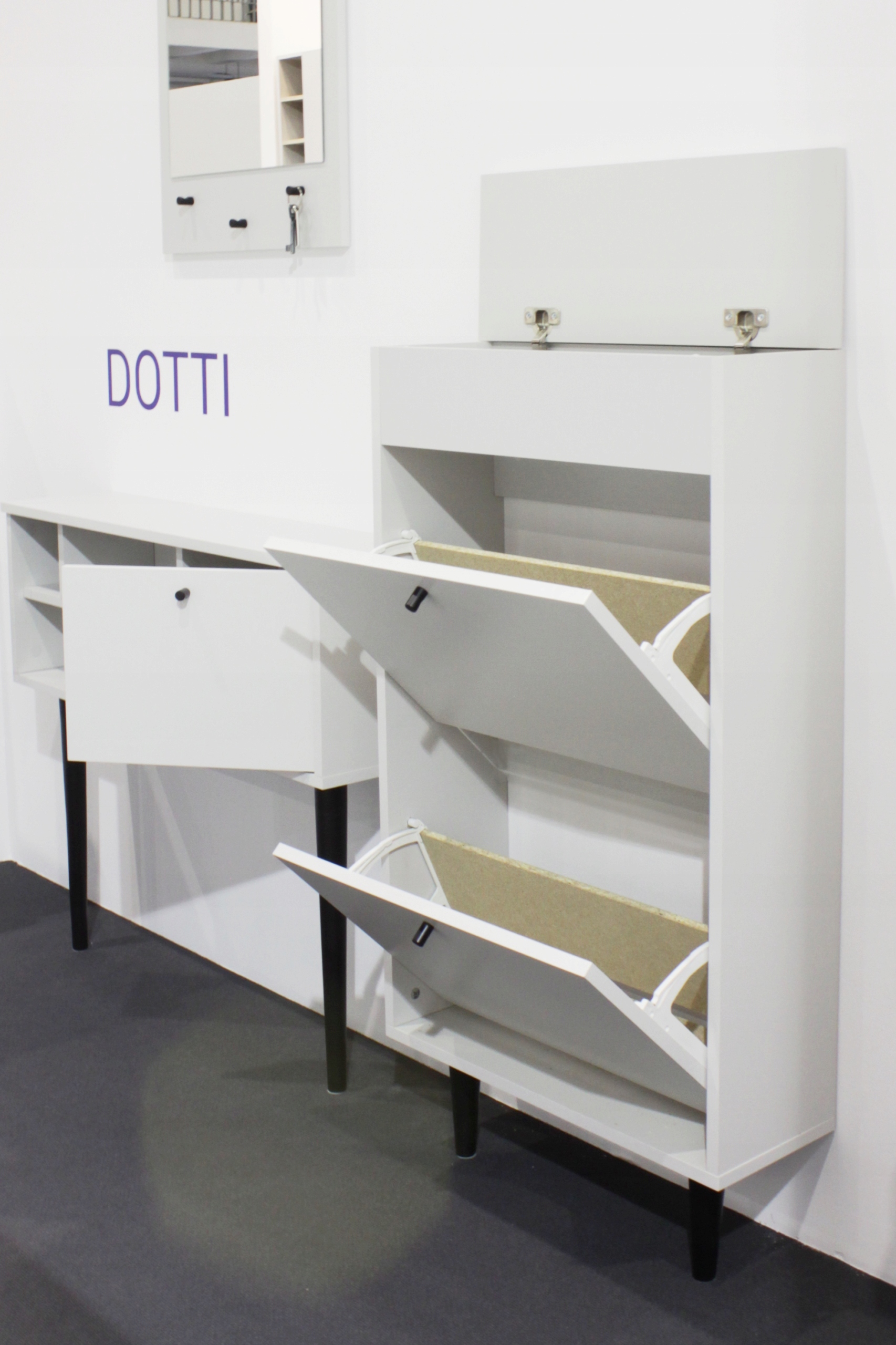 Тамба для взуття DOTTI виготовлена з ламінованої плити, яка характеризується підвищеною стійкістю до подряпин, високою стійкістю до стирання та вологостійкою поверхнею (можна протирати вологою губкою).