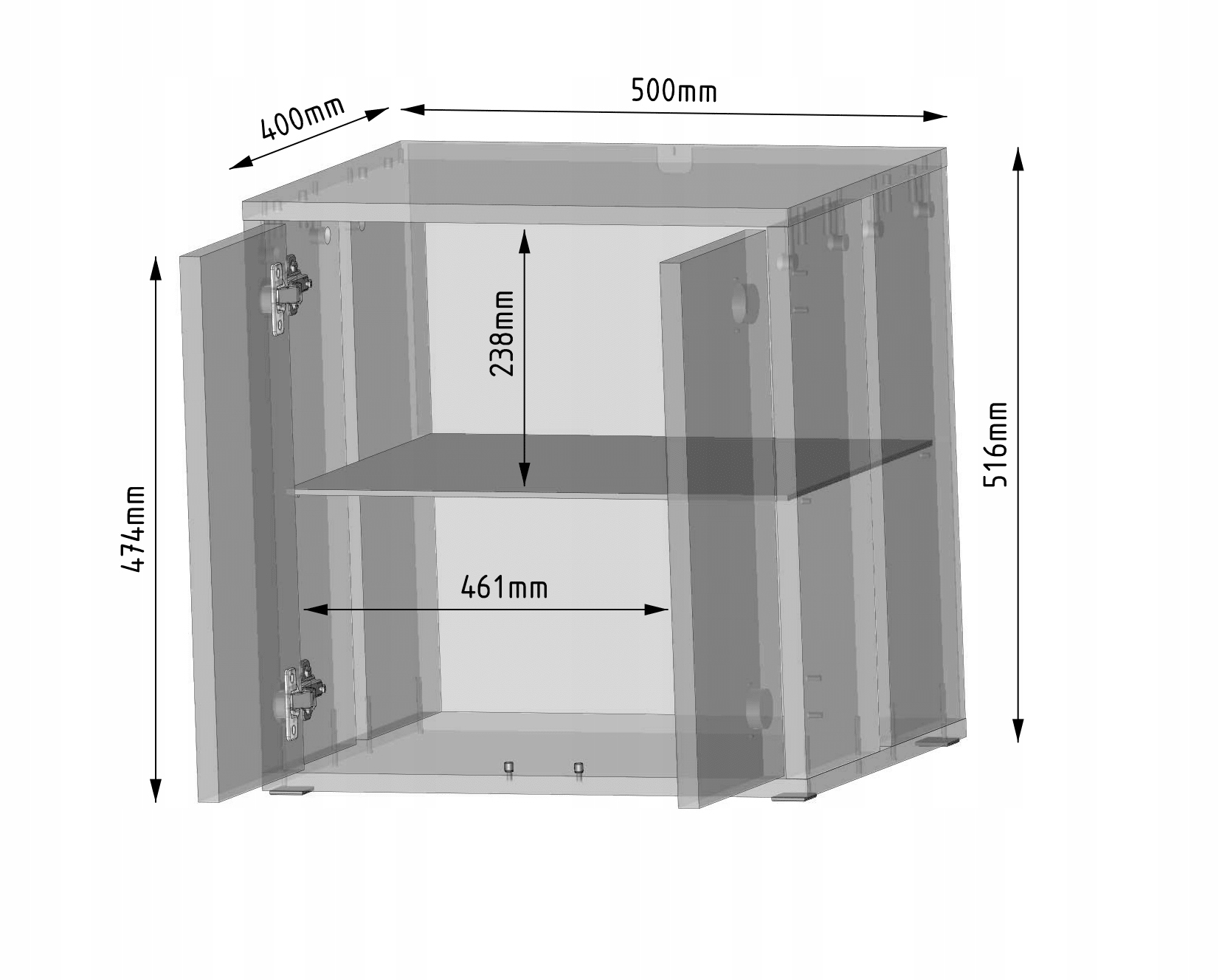 - Корпус виготовлено з ламінованої плити товщиною 16 мм, стійкої до механічних та хімічних пошкоджень
