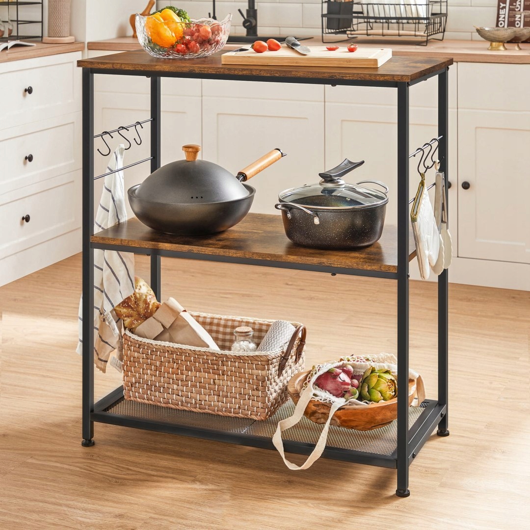 Етажерка універсальна і функціональна, вона чудово впишеться в кухню, а полички полегшать доступ до улюблених речей.