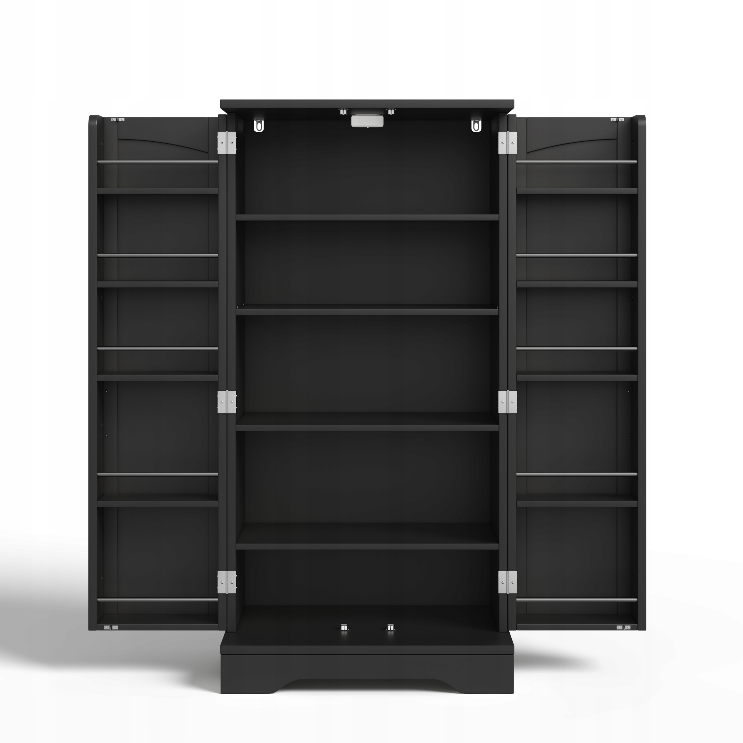 Кухонна шафа 120x60x40 см зі світлодіодним датчиком світла, велика дводверна шафа з регульованими полицями та дверними полицями - підходить для кухні, їдальні або вітальні, чорний