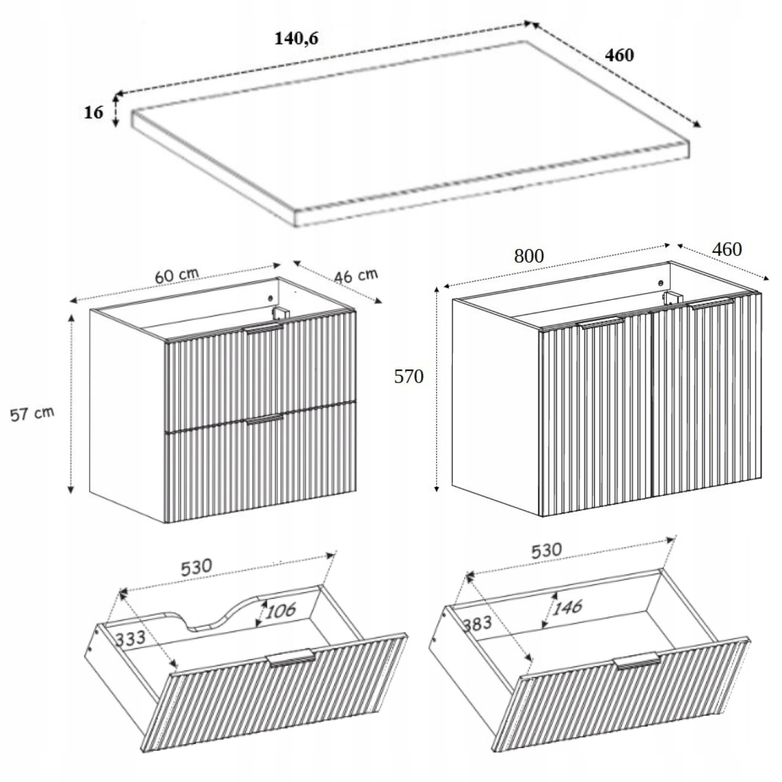 - ✅ тумба під умивальник 60 см (ящики або дверцята)