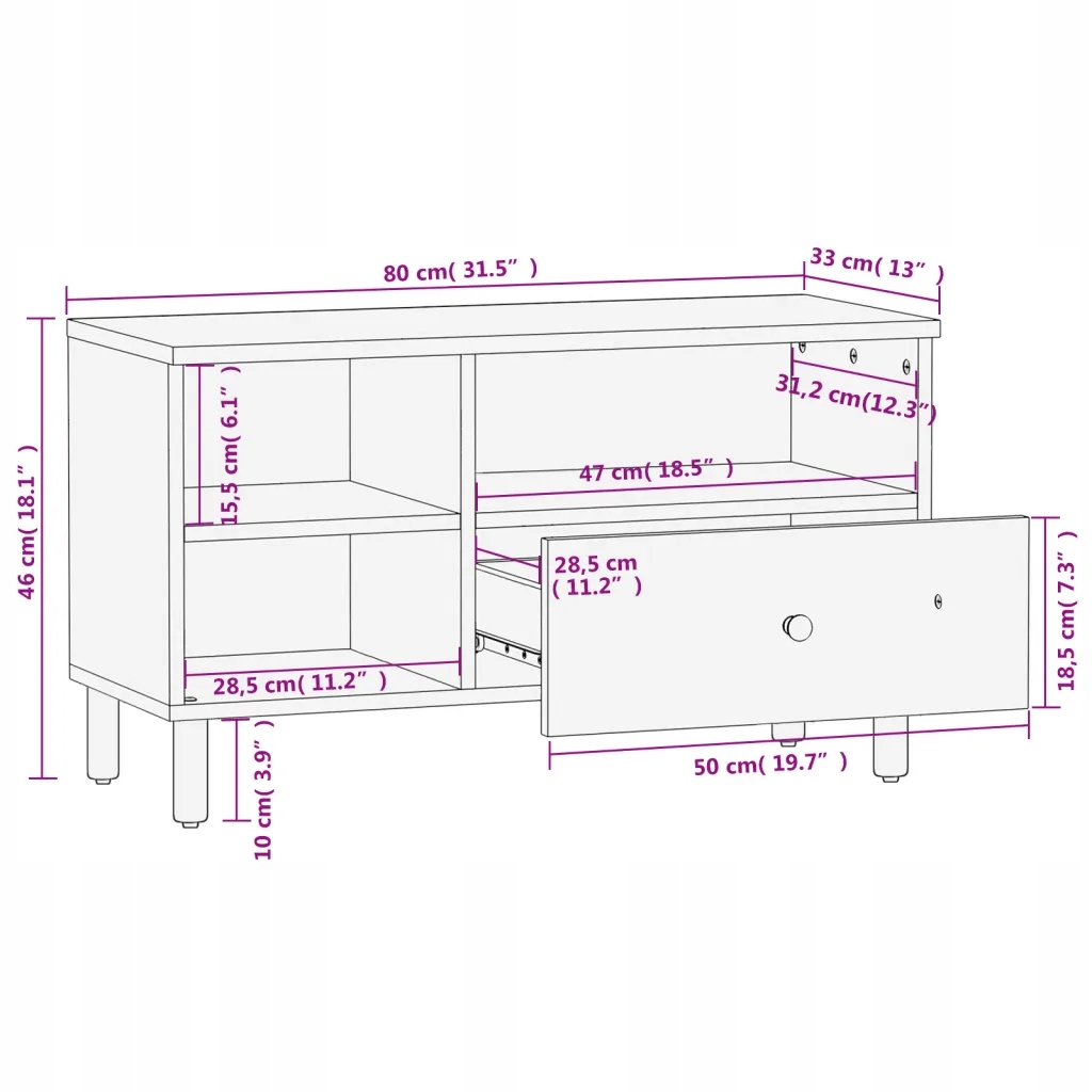 Тумба під телевізор, масив чорного дерева манго, 80x33x46 см