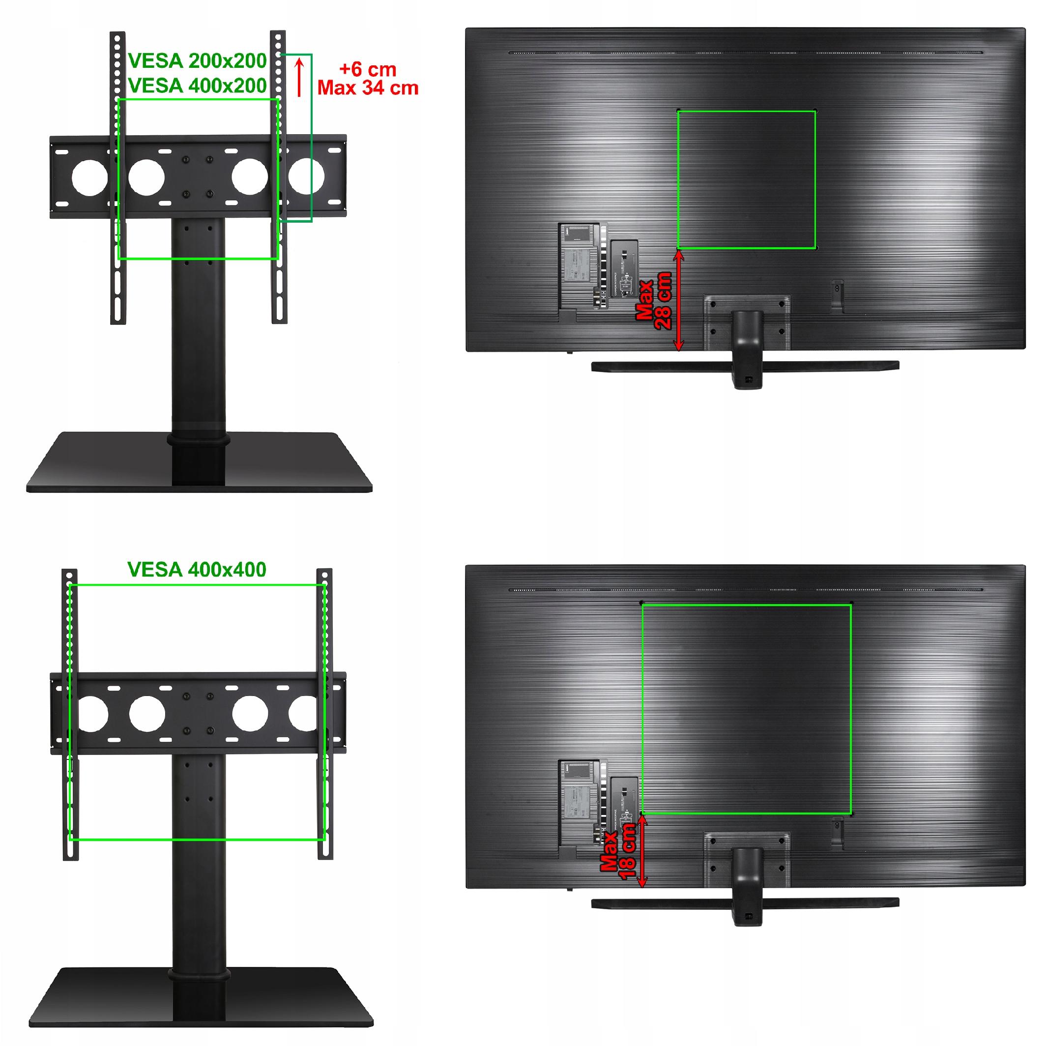 Для VESA 200x200 або 400x200 - максимум 28 см (при встановленні вище на тримачі ви можете отримати додаткові 6 см)