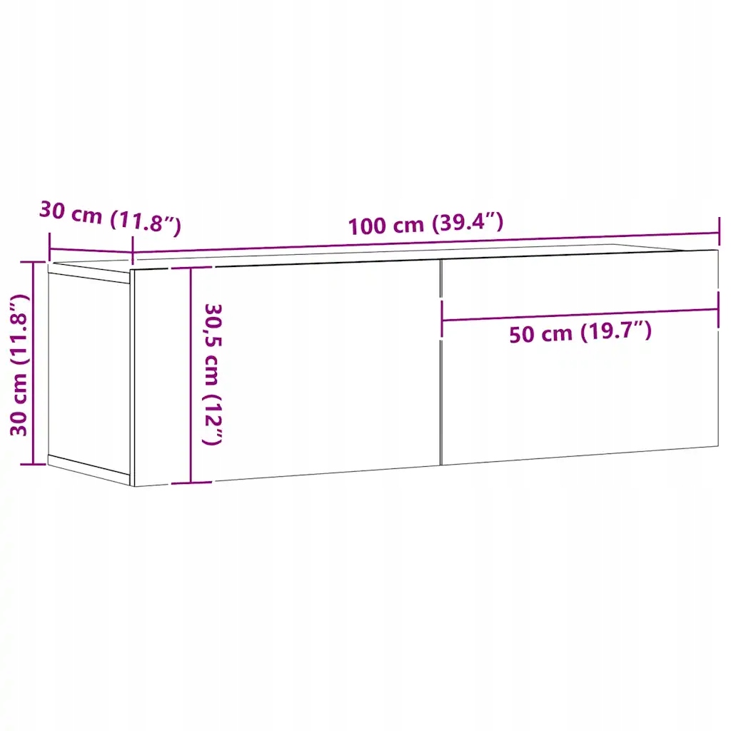 Підвісна тумба під телевізор Artisan дуб 100 х 30 х 30 см з 2 дверцятами