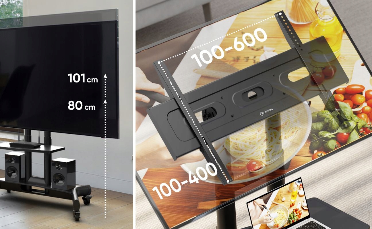 ONKRON TS1350-B - мобільна підставка для телевізора 32-70 дюймів з регулюванням висоти та нахилу, призначена для телевізорів, інтерактивних екранів і моніторів вагою до 45 кг. Сумісний із системою VESA 100x100 - 600x400, забезпечує повну стабільність. Підставка під телевізор з полицею дозволяє зручно зберігати додаткові пристрої, а рухома підставка під телевізор дозволяє швидко розташувати екран в будь-якому місці. Регулювання висоти від 870 до 1175 мм і можливість нахилу до 90° гарантують комфортну роботу в школах, офісах, конференц-залах і навчальних приміщеннях. Підставка для телевізора з тримачем кабелю полегшує прокладання кабелів, а мобільна підставка під телевізор допомагає підтримувати порядок у кімнаті.