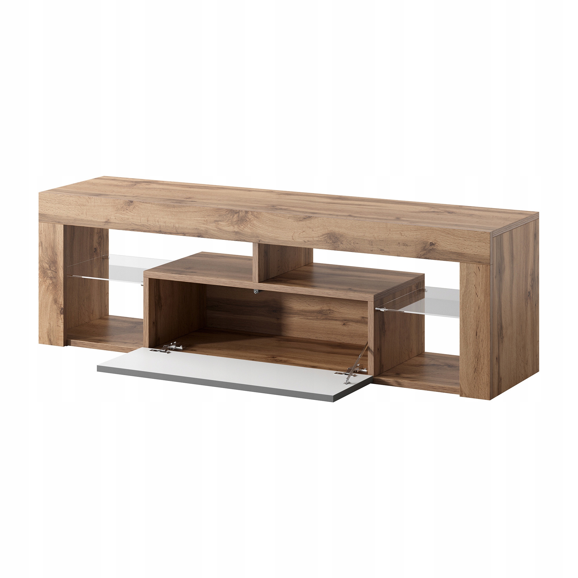 Ви прикрашаєте свою вітальню та шукаєте стильну тумбу під телевізор? Тумба під телевізор Bianko 140 см стане хітом! Конструкція виготовлена з високоякісної ламінованої дошки, тому меблі залишаться з вами на довгі роки. Фасад шафи оброблений глянцевим або матовим в залежності від обраного кольору. Меблі оснащені містким закритим відділенням для зберігання, яке дозволить заховати додаткові кабелі або пульти дистанційного керування. Двері відкриваються вниз за допомогою системи Push to Open. Шафа також оснащена чотирма практичними нішами, в яких можна зручно розмістити таке обладнання, як декодер або ігрова приставка. Меблі не мають вбудованої спинки, тому ви можете легко розмістити всі дроти та кабелі. За бажанням функціональні полиці можна підсвічувати універсальним світлодіодом на батарейках. Детальні розміри доступні в галереї. Зробіть освіжаючі зміни у своїй вітальні з RTV Bianko сьогодні!