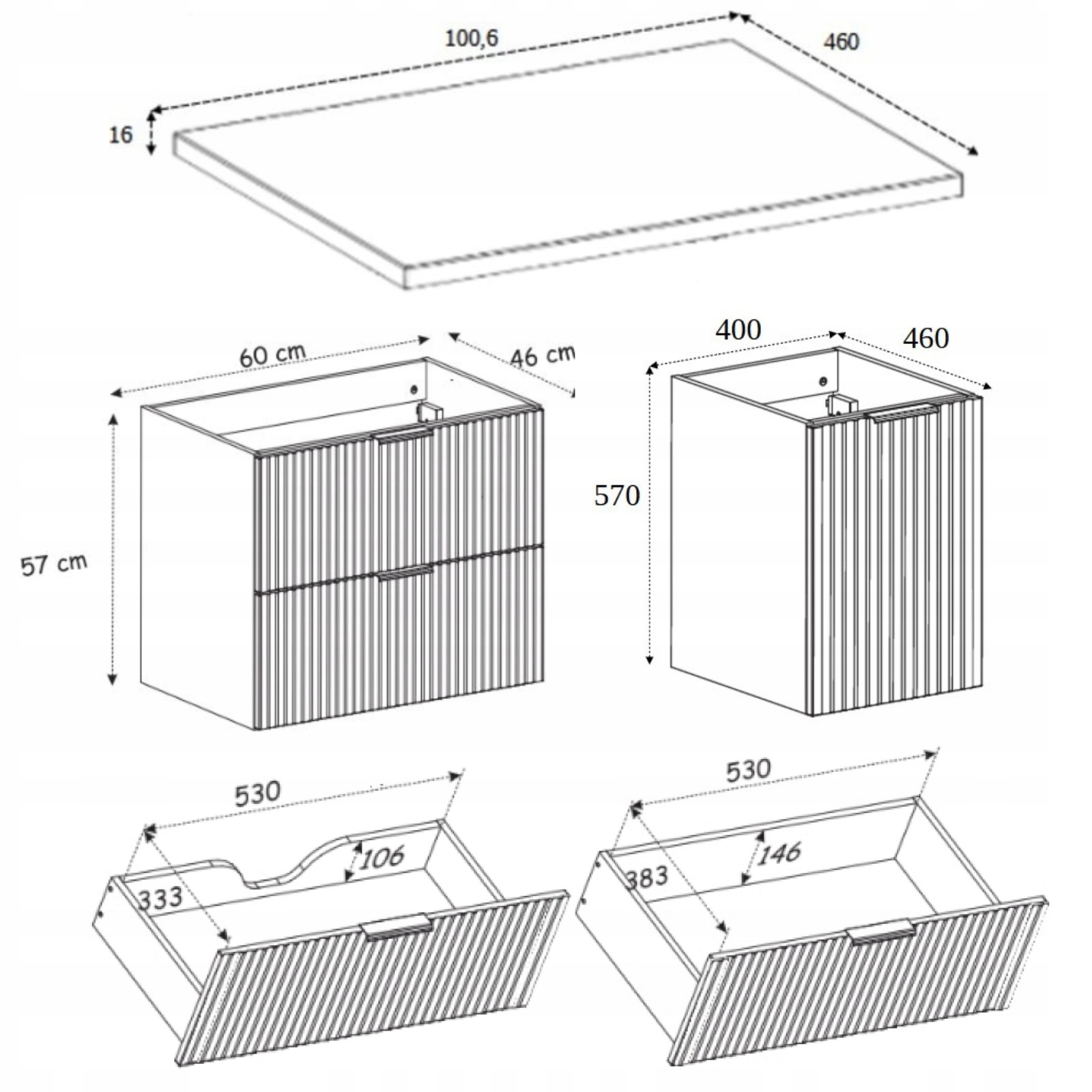- ✅ тумба під умивальник 60 см (ящики або дверцята)