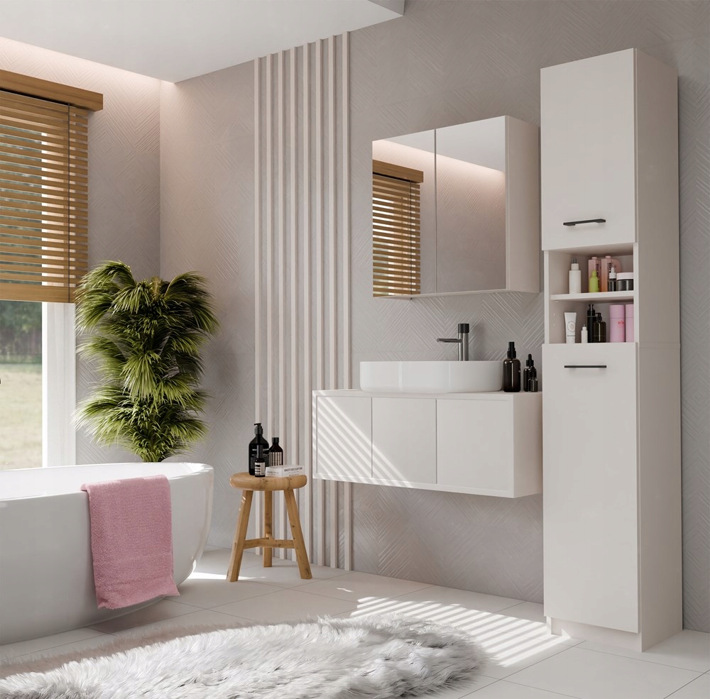 - Ідеально підходить для малих і середніх ванних кімнат, ідеально використовує простір над умивальником.