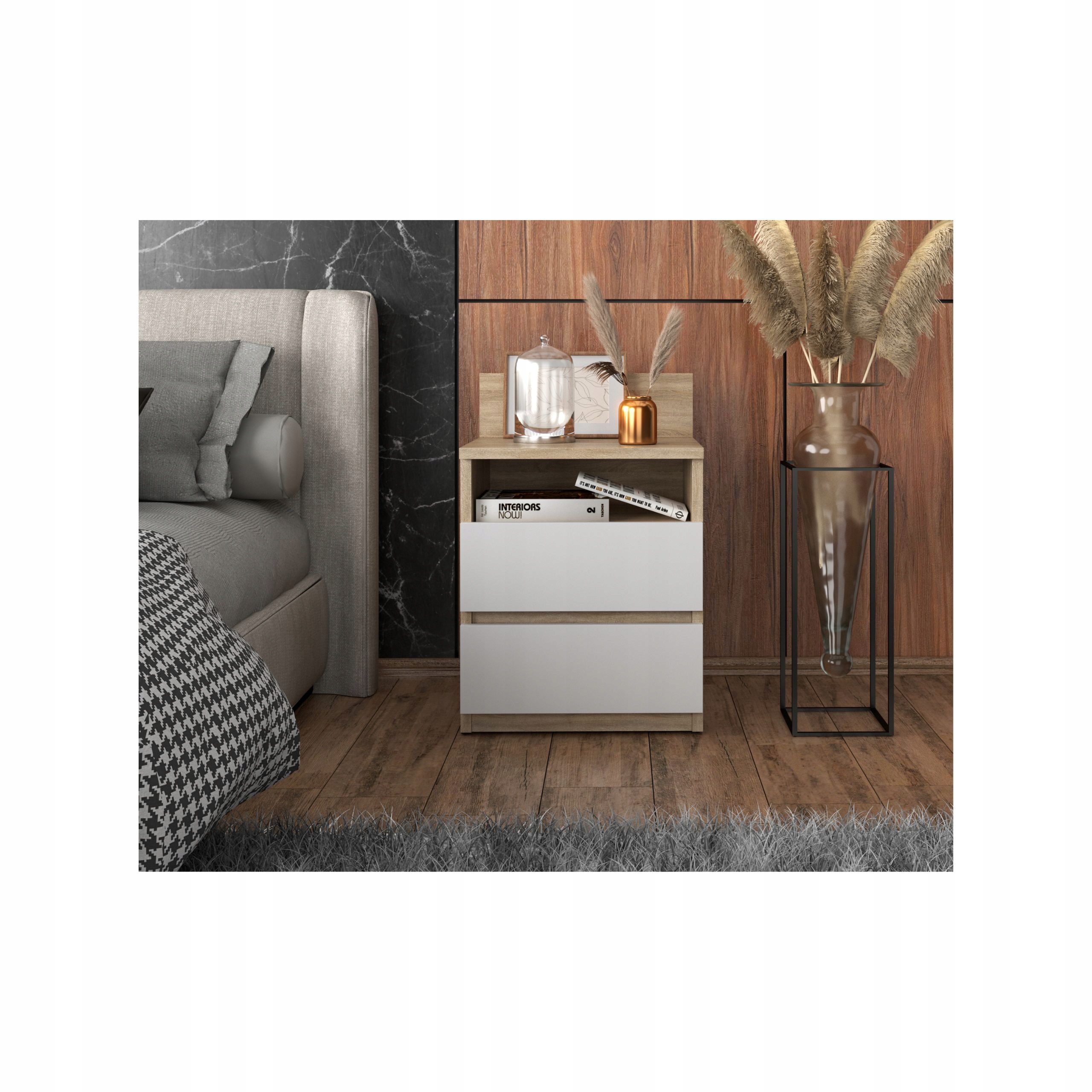 Ніжкова тумбочка дуб сонома біла тумбочка 40см 2S Shelf Bedroom Furniture