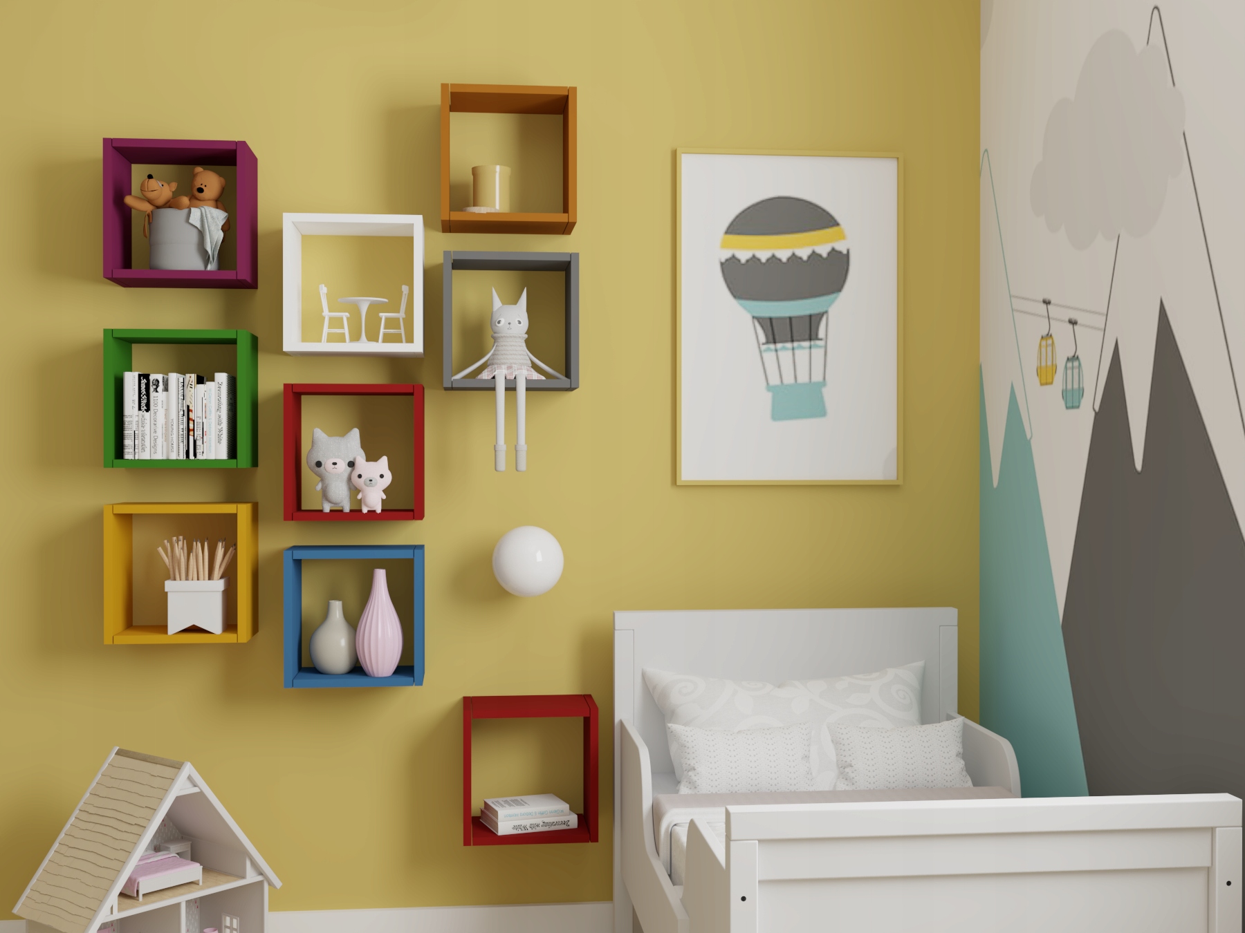 Ідеально підходить для оздоблення стін у вітальні, холі, спальні та дитячій кімнаті для підручних речей або прикрас. Він ідеально доповнює порожнє місце на нашій стіні як декоративний елемент. У нас є великий вибір кольорів, щоб ви могли створити кімнатний набір своєї мрії. Що показують візуалізації нижче.