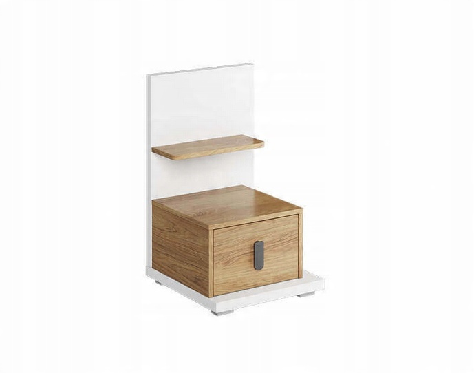 Елегантний нічний клуб Simi з оригінальною та сучасною формою. Замикаючий ящик дозволяє легко отримати доступ до речей, розміщених всередині. Верх ящика та невелика полиця дозволяють зручно відкласти найнеобхідніші предмети - телефон, будильник або крем для рук. Задня суміш та розширена база роблять меблі дуже оригінальними. Завдяки цим елементам стіл для ліжка створює модне та ефективне ціле з ліжком MS-08L. Меблі виготовлені з довговічної ламінованої тарілки, закінченої міцним краєм. Законодавча версія.
