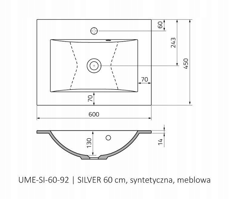 - Комплект складається з: Тумба під умивальник 60 см, Умивальник 60 см