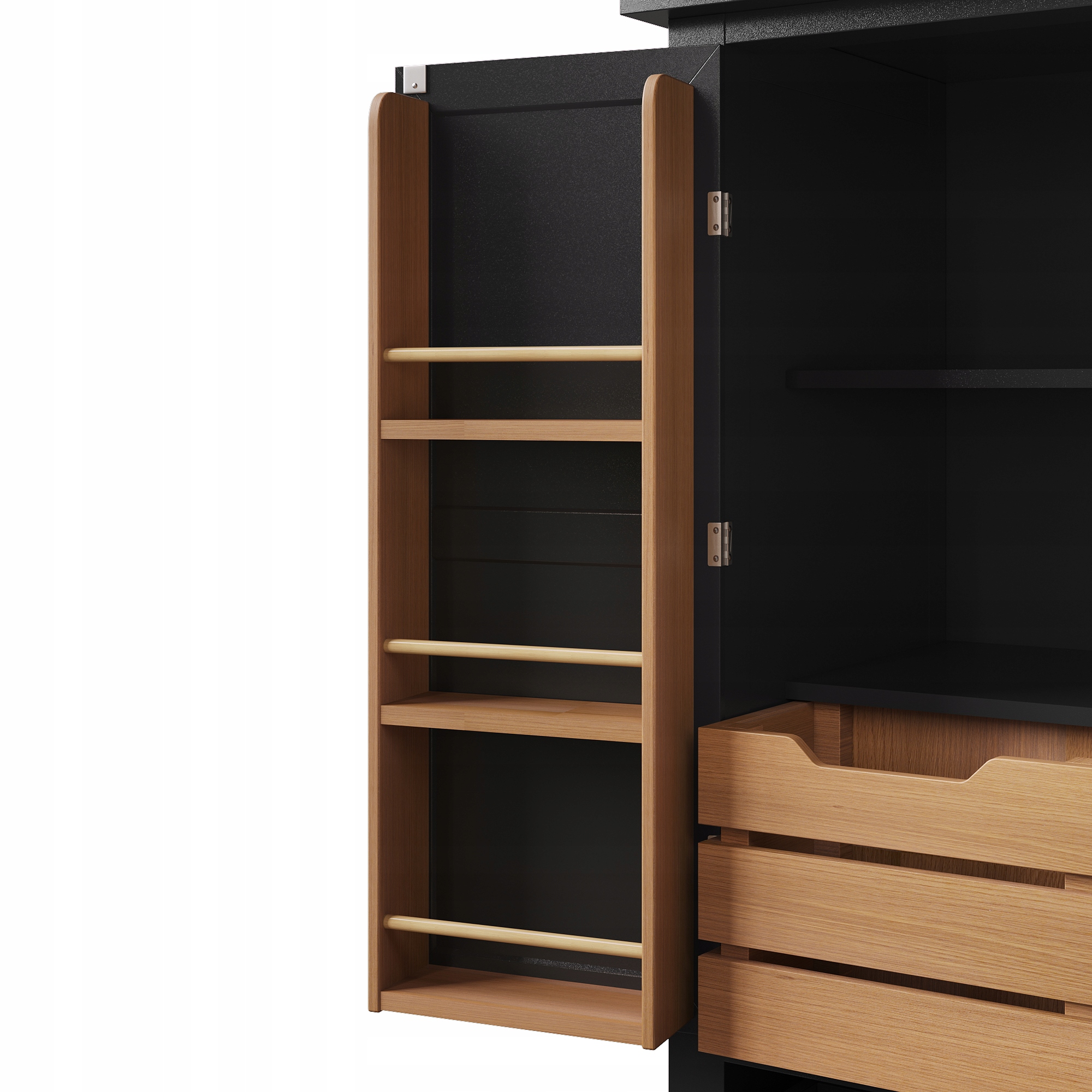 - Має кілька відділень, у тому числі окремий верхній простір для зберігання з подвійним складом. двері та рами, дві фіксовані полиці та п’ять висувних ящиків, щоб задовольнити різноманітні потреби та збільшити простір для зберігання. Три ящики мають знімні решітчасті полиці для зручного щоденного доступу.