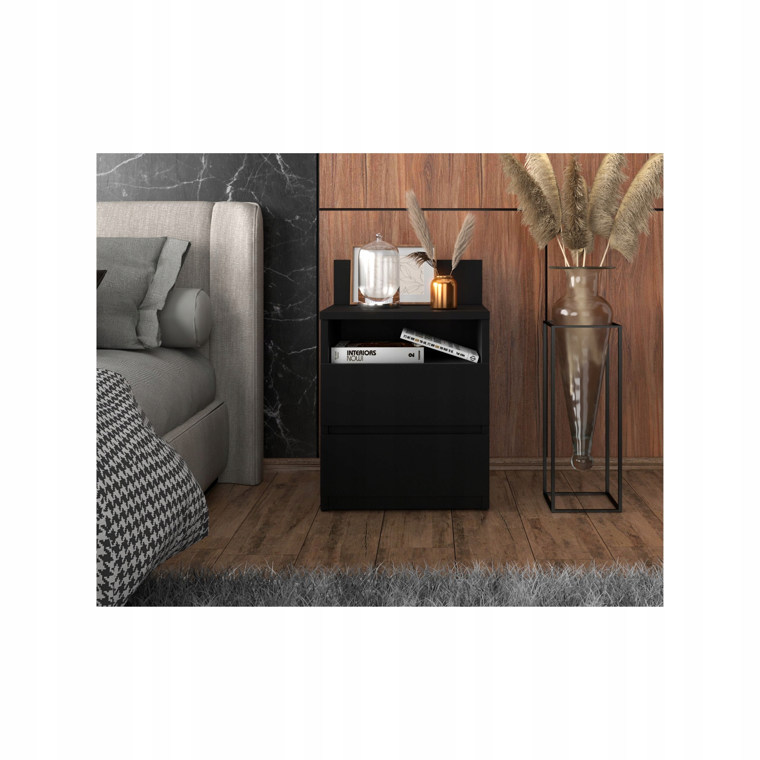 Тумбочка Чорна Тумбочка 40 СМ 2 Ящика Полиця Меблі Для Спальні