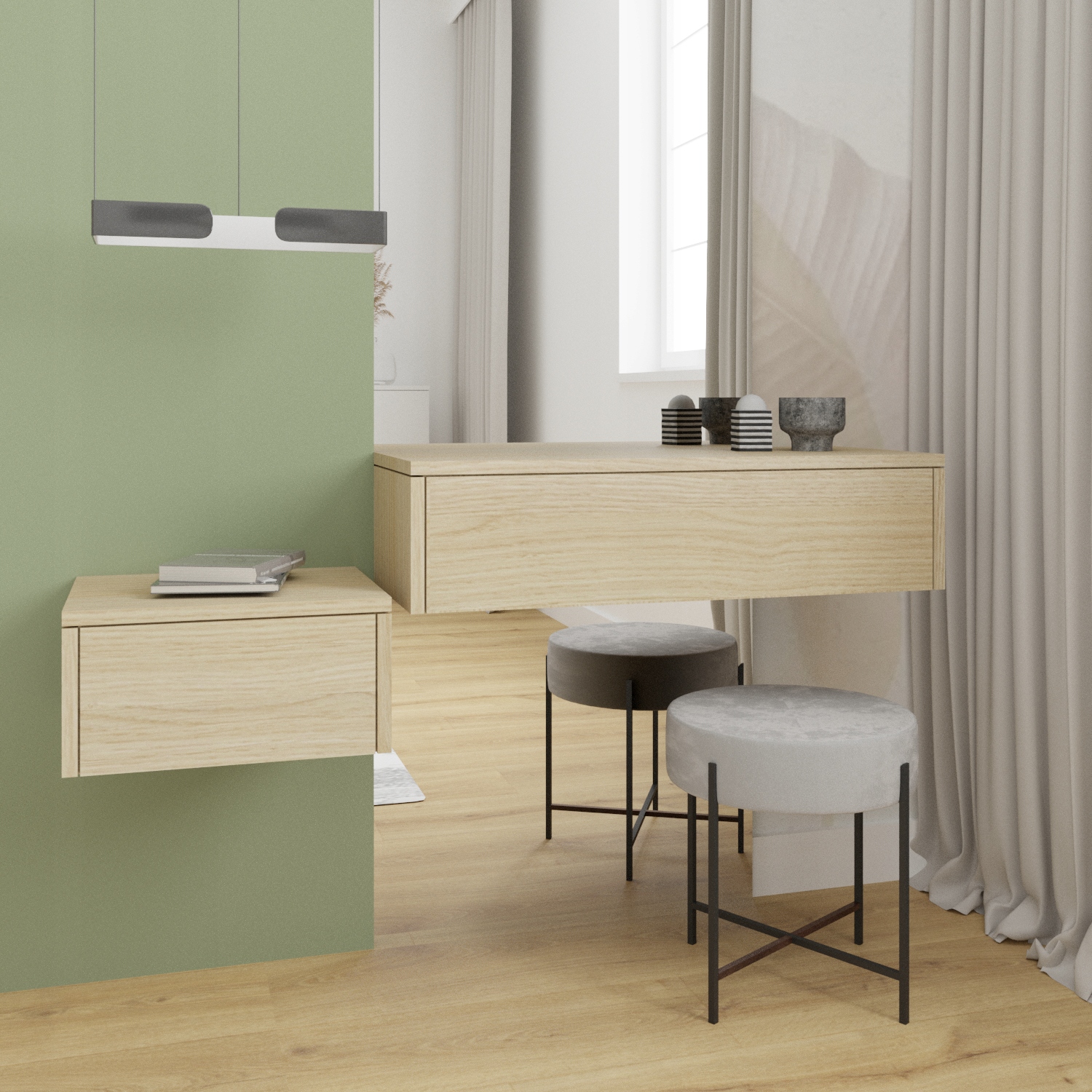 Тумбочка Шафа ідеально підходить для будь-якої спальні для підручних речей, таких як книга, лампа або улюблена фотографія. Завдяки своєму зовнішньому вигляду підходить як для класичних, так і для сучасних інтер'єрів. Його підвісна форма додасть легкості вашому інтер'єру, а також дозволить зберегти чистотою важкодоступні місця .