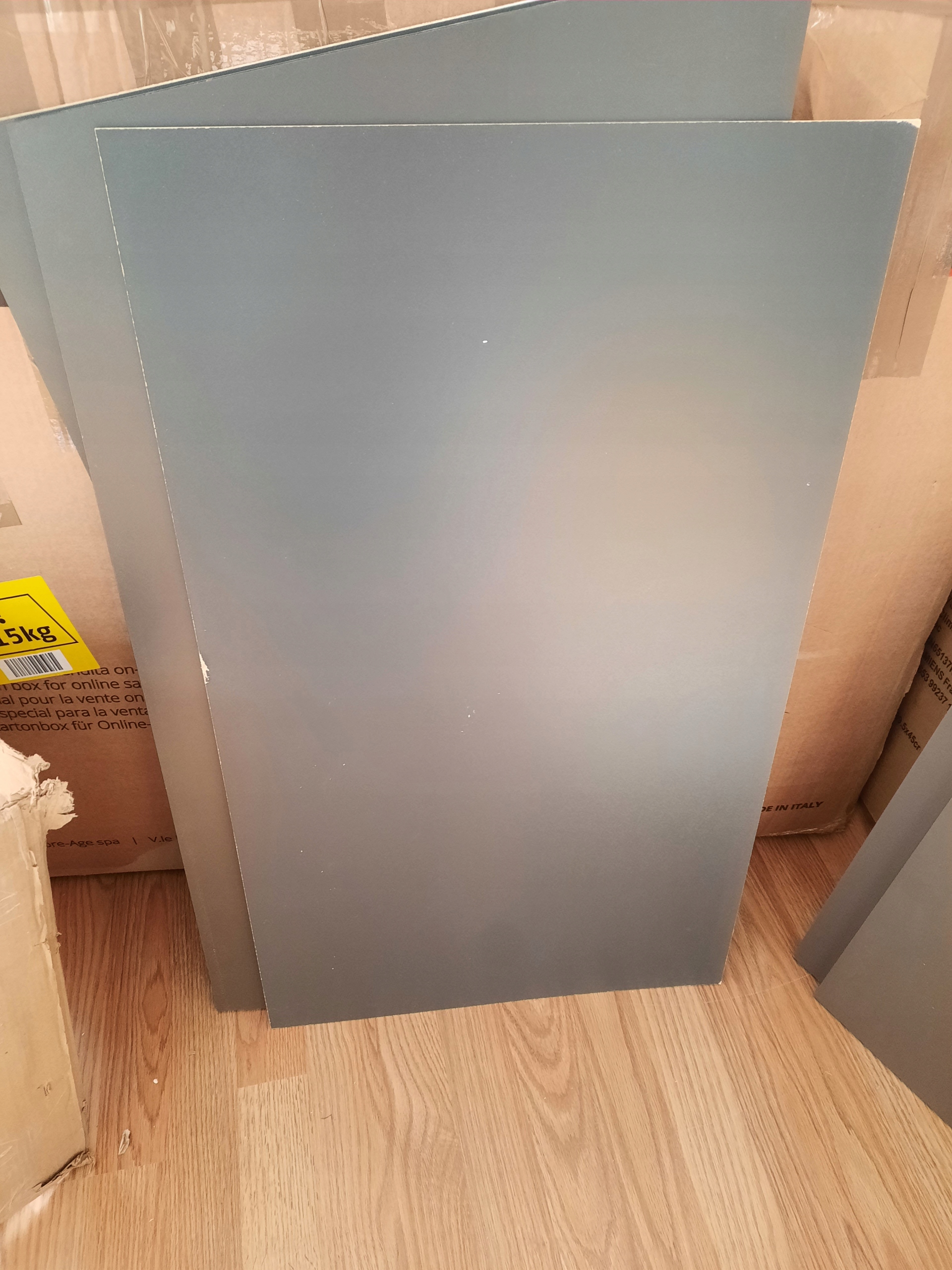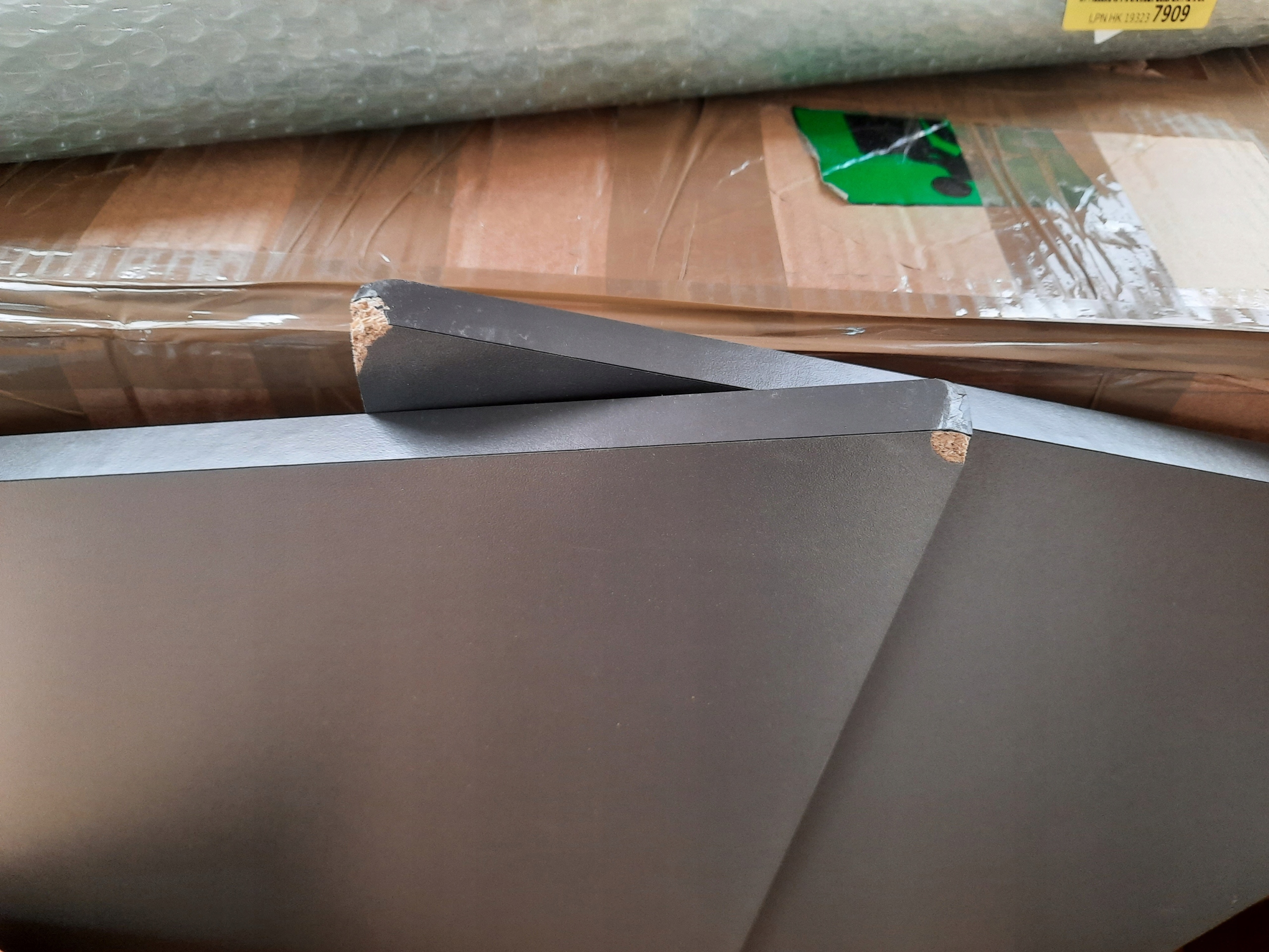 Виставковий продукт, укомплектований, ЗВЕРНІТЬ УВАГУ, продукт має порізи та тріщини на кутах бічних елементів, верхньої частини та на задньому елементі та дні ящиків. Пошкодження видно на фотографіях нижче