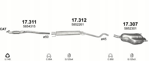 Tłumik środkowy Opel Astra H poj.1,6+1,8+zestaw