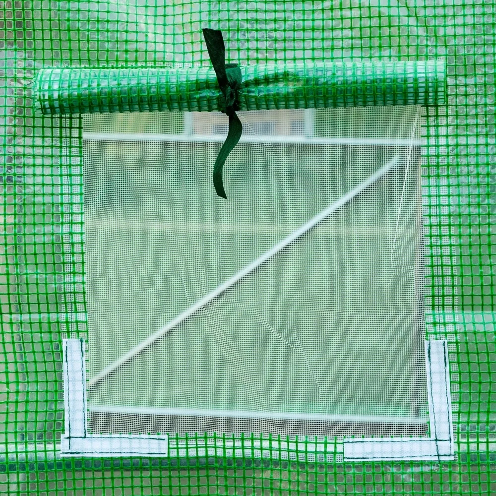 Тунельне покриття з поліетиленової плівки з УФ= 4Завдяки чому посіви матимуть відповідний мікрокліматі водночас створює ізоляційну функцію. У бічних стінках є вікна з москітними сітками, завдяки яким ви можете контролювати температуру та циркуляцію повітря і водночас захищатися від комах. Кожна стіна подовжується для створенняособливого простору