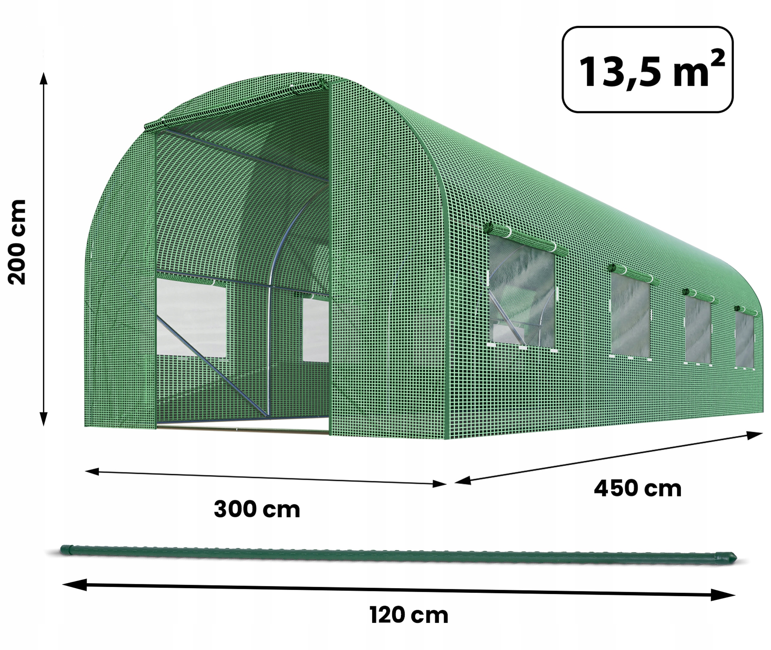 Садовий фольгований тунель, садова теплиця, 4,5х3м, стовпи, 13,5м2, зелений