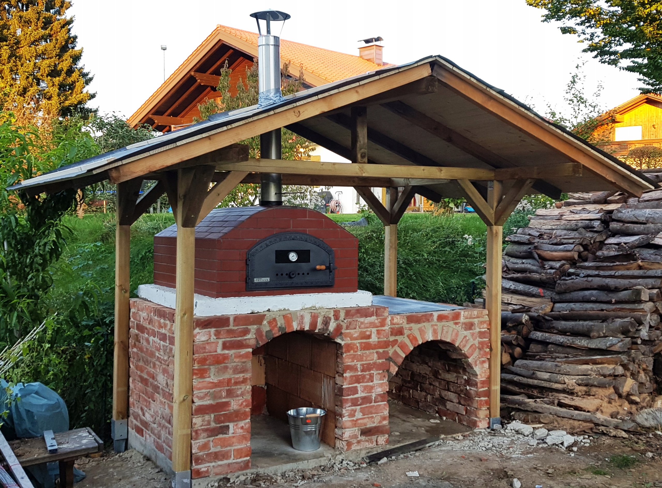 Важлива інформація: Шамот – це матеріал, який дуже добре накопичує та віддає тепло. Однак він відноситься до делікатних і крихких матеріалів. Після спорудження, утеплення та утеплення печі вона повинна відстоятися не менше 5 тижнів для природного випаровування вологи. Після закінчення цього часу піч слід розпалити.За несприятливих погодних умов (пізня осінь-зима) піч слід накрити дахом і захистити від вологи, щоб запобігти пошкодженням, спричиненим, наприклад, морозом. Кожна піч повинна мати димохідний вентилятор, який складається із заслінки та принаймні одного метра труби димоходу.