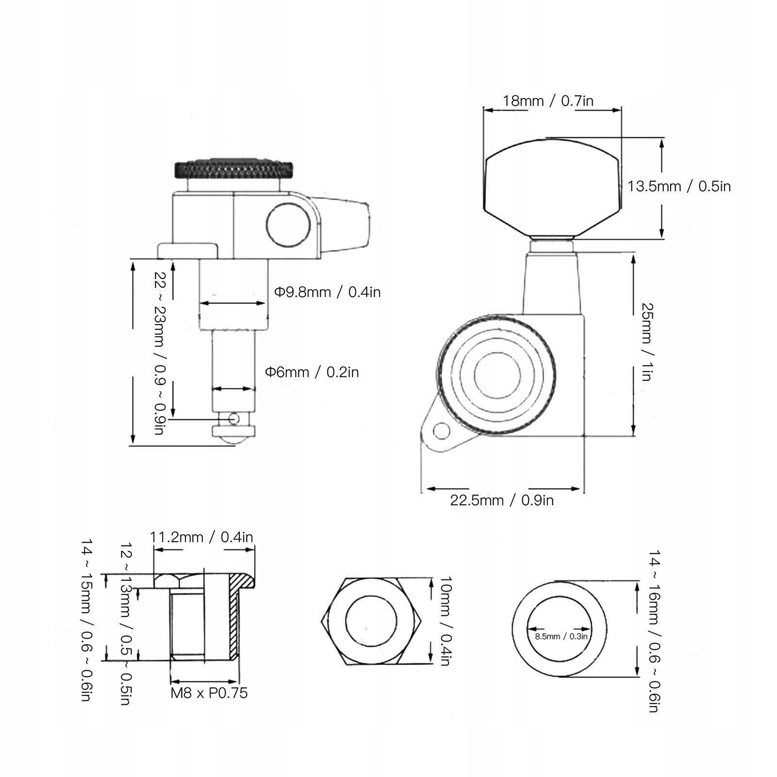- 6 x Тунери, що блокують гітару 6 x гвинт
