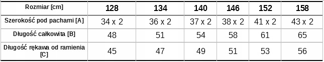 Таблиця розмірів (вимірювання в плоскому стані без розтягування може відрізнятися на +/- 1 см)