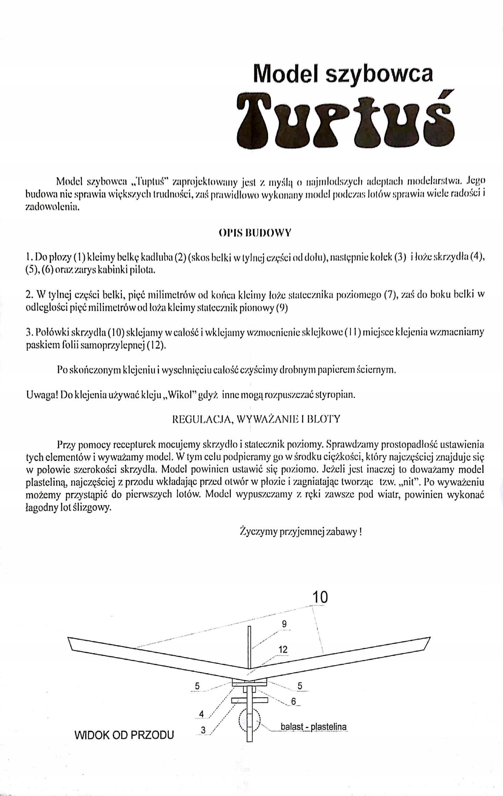 Tuptuś модель -планер