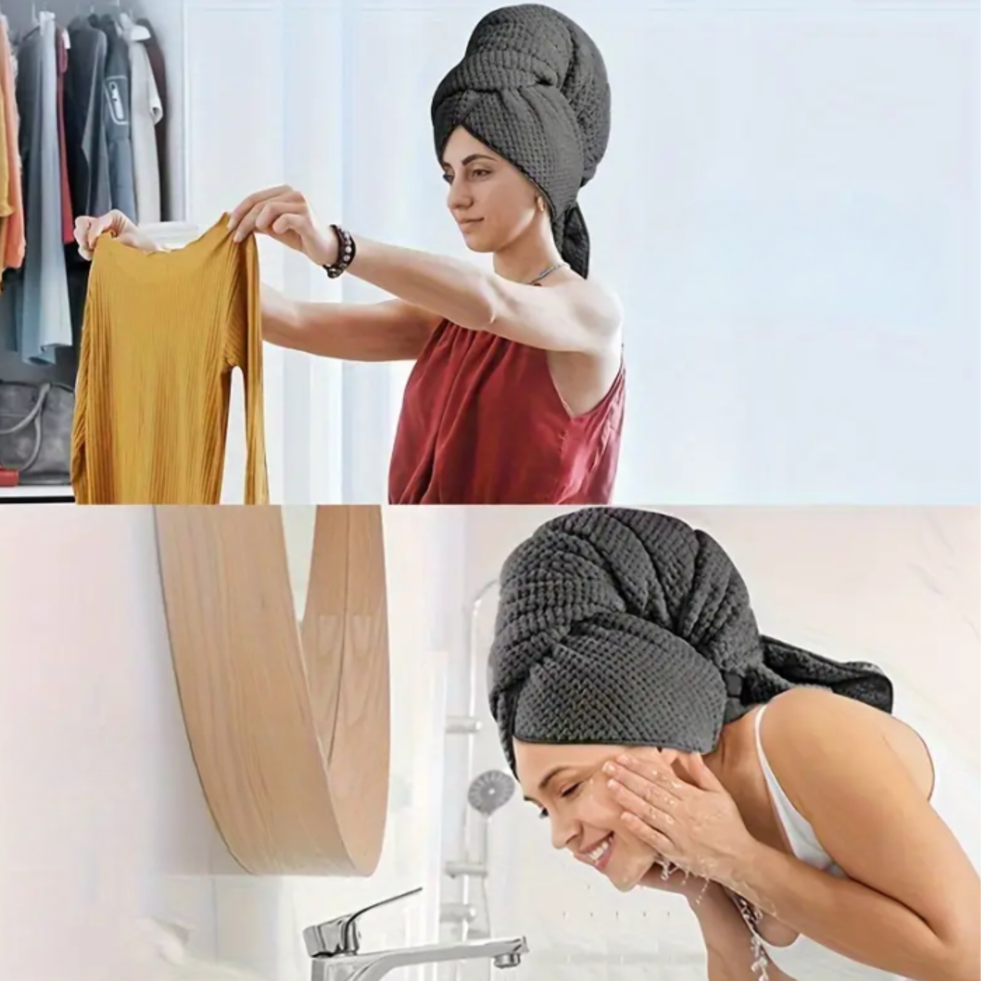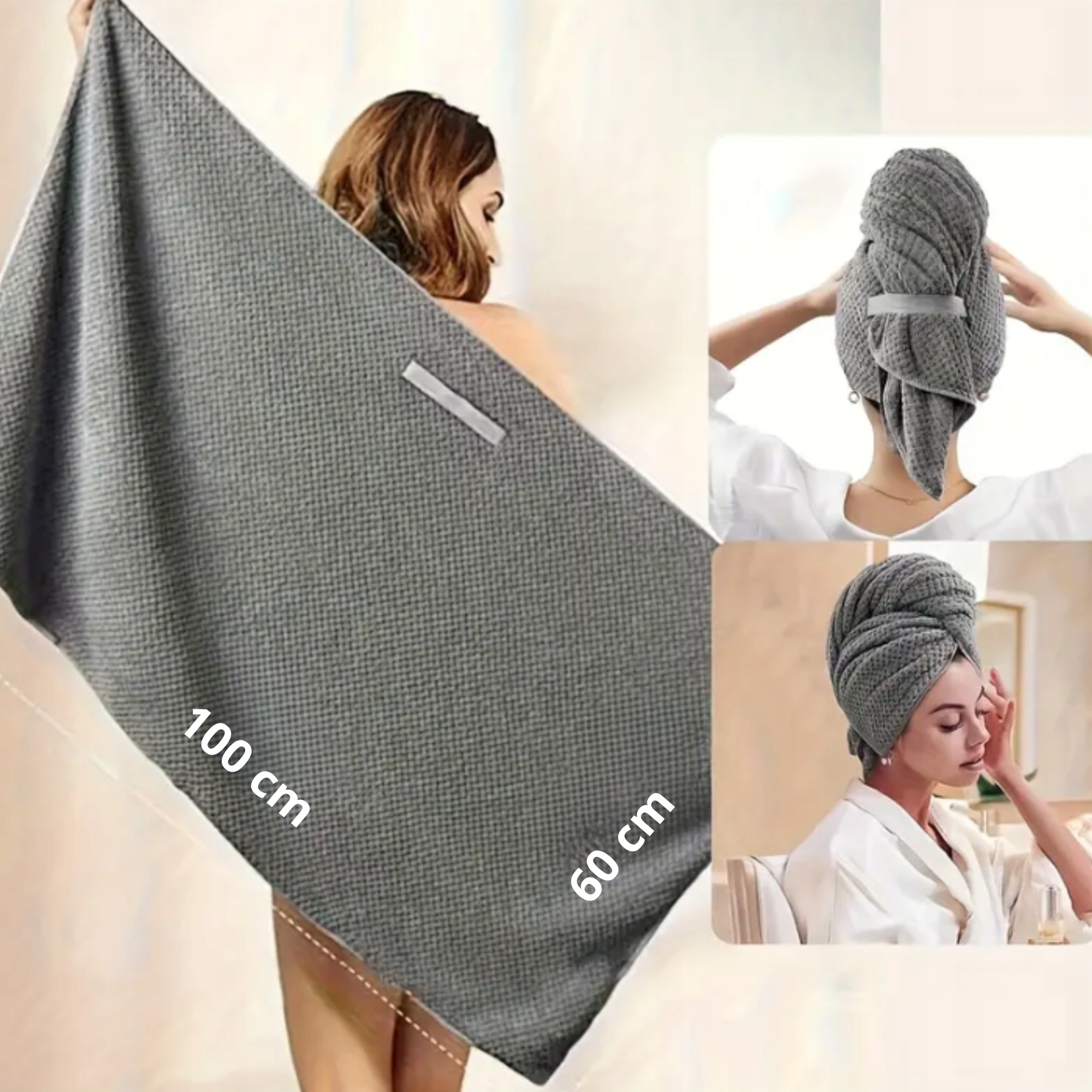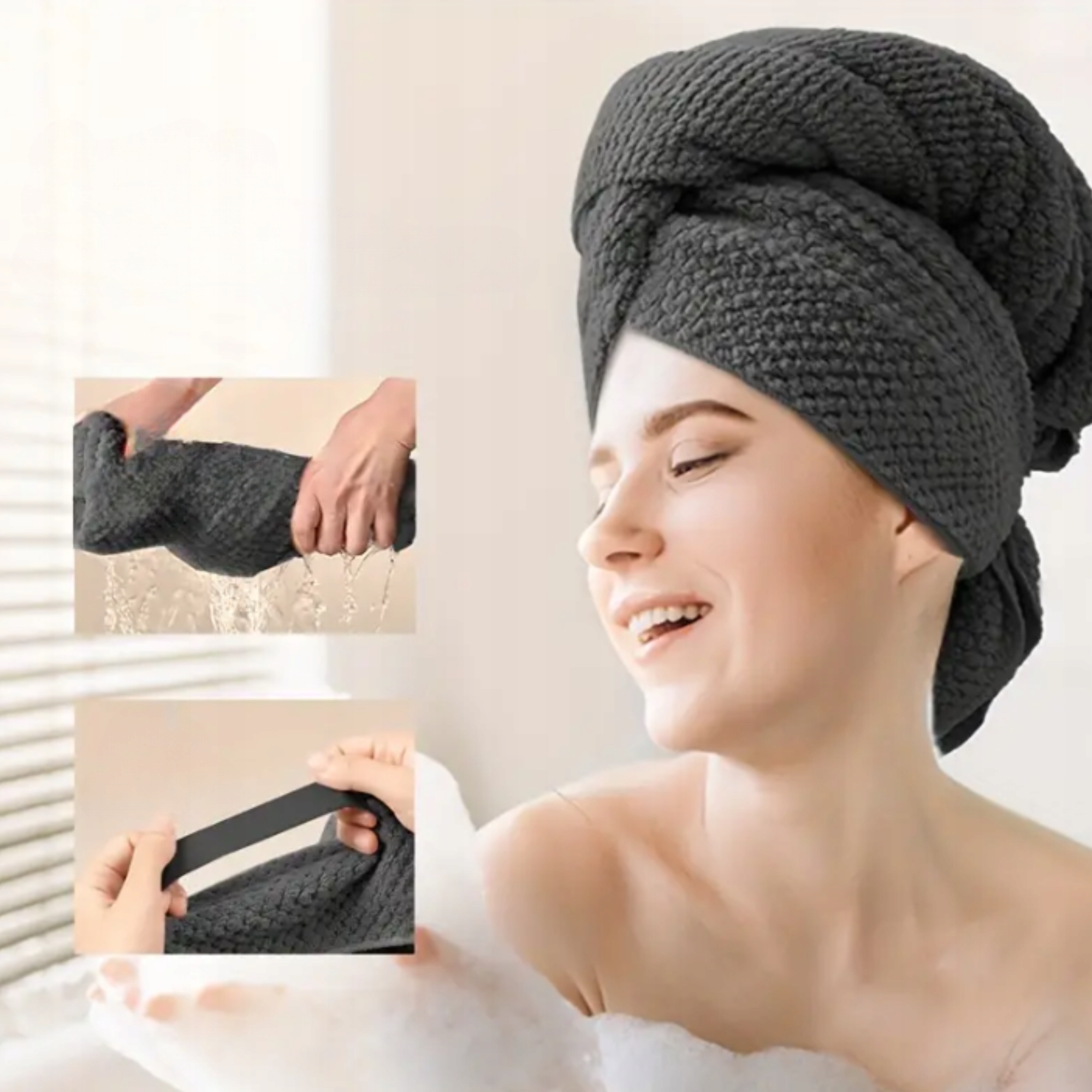 ✅Суперабсорбуючий матеріал: Мікрофібра чудово вбирає вологу, що прискорює висихання волосся та знижує ризик його пошкодження. Завдяки цьому ваше волосся стане менш чутливим до ламкості та посічених кінчиків. Матеріал надзвичайно м’який, що робить його ніжним для волосся та шкіри голови.