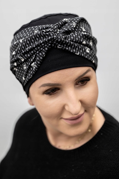 Красивий і ніжний тюрбан. Ідеально прилягає до голови. Проста, класична форма, декорована шовком у вигляді пов'язки. Тюрбан можна вільно обертати на голові так, щоб стрічка розташовувалася посередині та збоку капелюха.