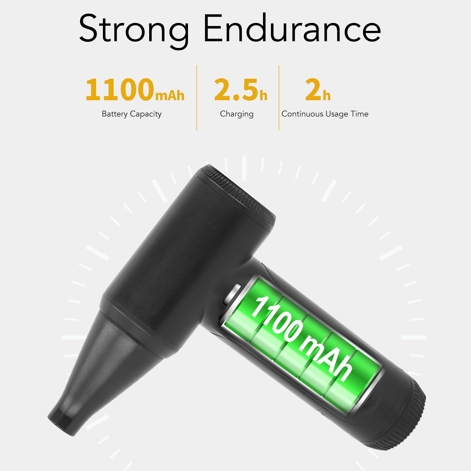 2. Вбудована батарея: ця електрична турбінна повітродувка має вбудовану літієву батарею великої ємності 1100 мАг для тривалого терміну служби. Підтримує зарядку 5 В постійного струму, зручно використовувати будь-де та будь-коли.