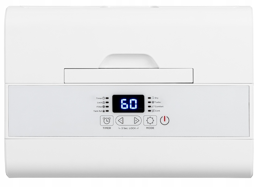У верхній частині пристрою є панель керування з цифровим дисплеєм. Завдяки чітким великим кнопкам керування пристроєм надзвичайно просте, а на дисплеї відображається поточний рівень вологості в приміщенні.