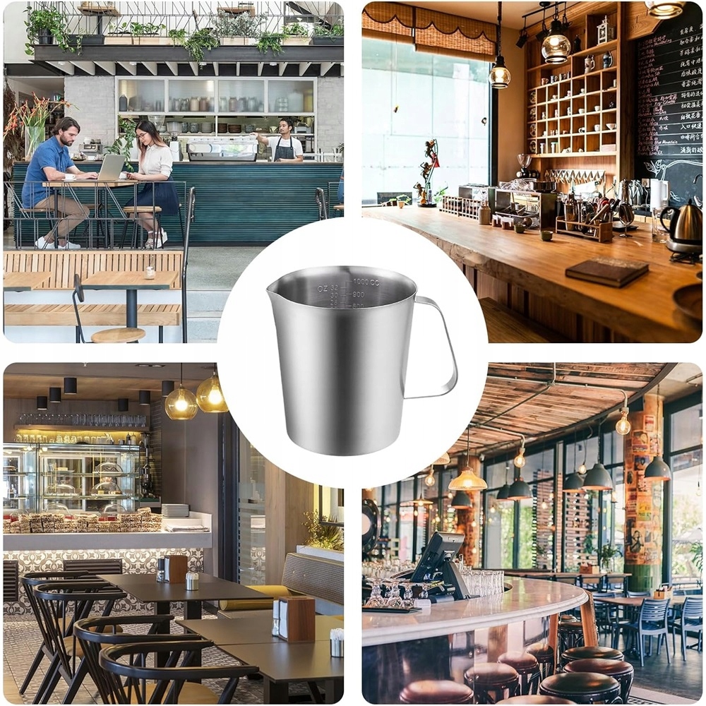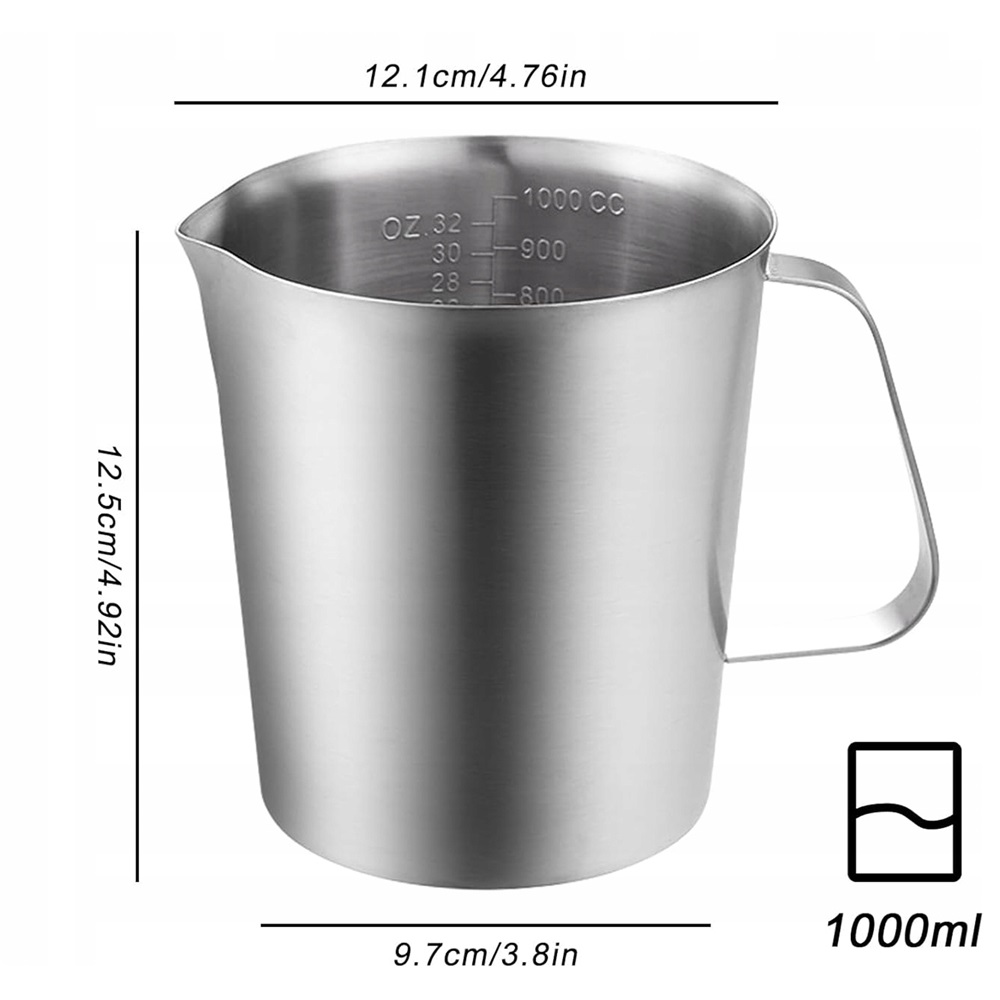 Молочні смоли з нержавіючої сталі містять 1 х 1000 мл молочного гиру з гладкою поверхнею, зручним на дотик і красиво -виглядати. Ідеально підходить для заварювання кави, латте та інших напоїв.