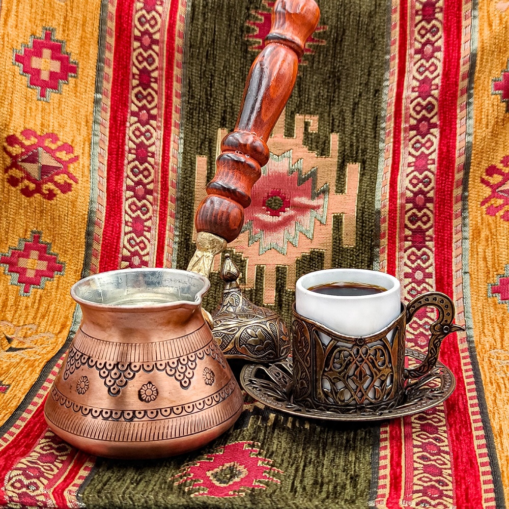 Турецька мідна тигель 230 мл + турецька кава Mehmet Efendi 6 G
