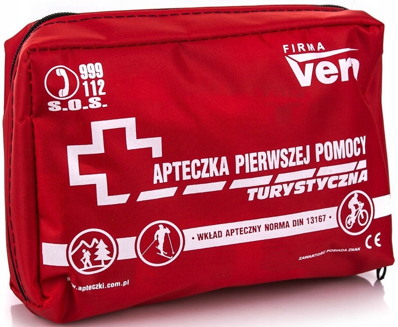 Аптечка туристична в саші має основну комплектацію відповідно до стандарту DIN-13167. Компактна форма дозволяє брати аптечку з собою під час подорожі та перев’язувати рани під час екскурсій.
