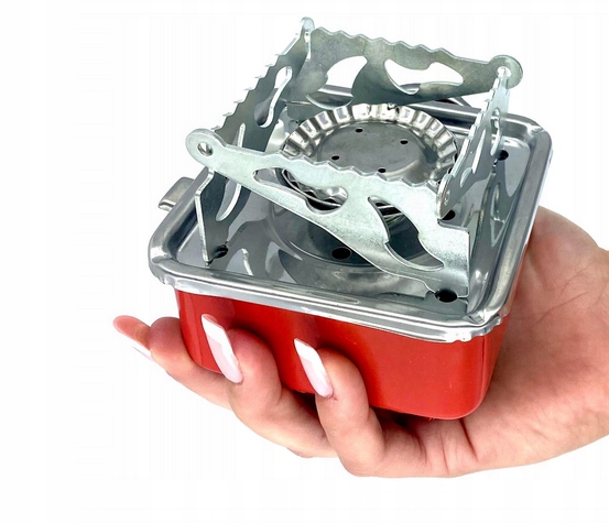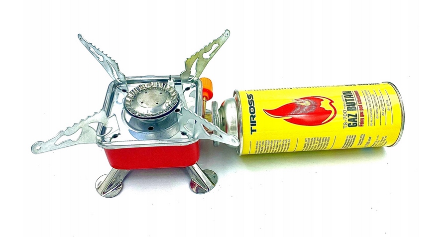 Міні-туристична плита на газі патрони/картуші. Малий розмір ідеально підходить для туризму, подорожей, скелелазіння та їзди на велосипеді. Оснащений п’єзоелектричним розпалюванням, складними ніжками та чотирма міцними металевими складними кронштейнами під посудиною.