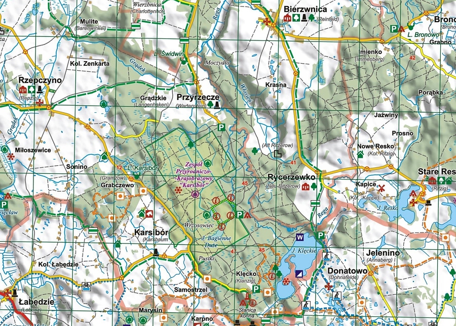 - Туристичні маршрути: позначені маршрути для піших прогулянок, велосипедів, верхової їзди та скандинавської ходьби, навчальні стежки, маршрути для каякінгу, велосипедні шляхи.