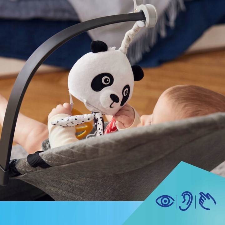 Чітко окреслена контрастна морда панди, приємні звуки брязкальця, прорізувача для зубів. і велике дзеркало залучають і підтримують розвиток органів чуття дитини. Сенсорна туристична карусель Canpol babies підтримує розвиток природних навичок дитини – зору, дотику та слуху, а також заохочує дитину розвивати когнітивні та моторні навички.