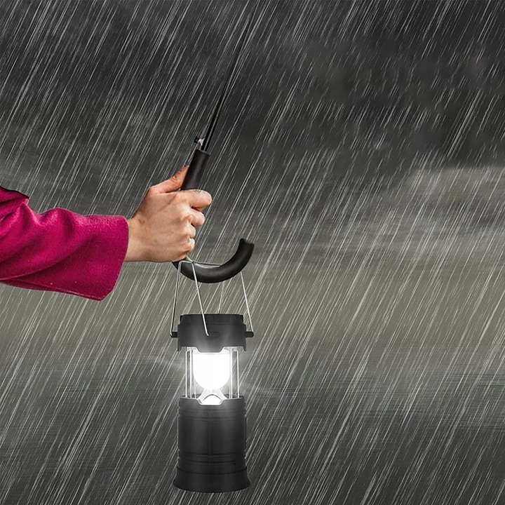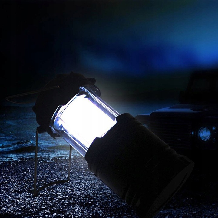 Туристична лампа COB LED - це практичне і незамінне обладнання для людей, які подорожують і відпочивають у кемпінгах. Його також можна використовувати як резервне джерело світла у разі відключення електроенергії. Легкий, але міцний пластиковий корпус стійкий до бризок і ударів, тому добре працюватиме в складних туристичних умовах.