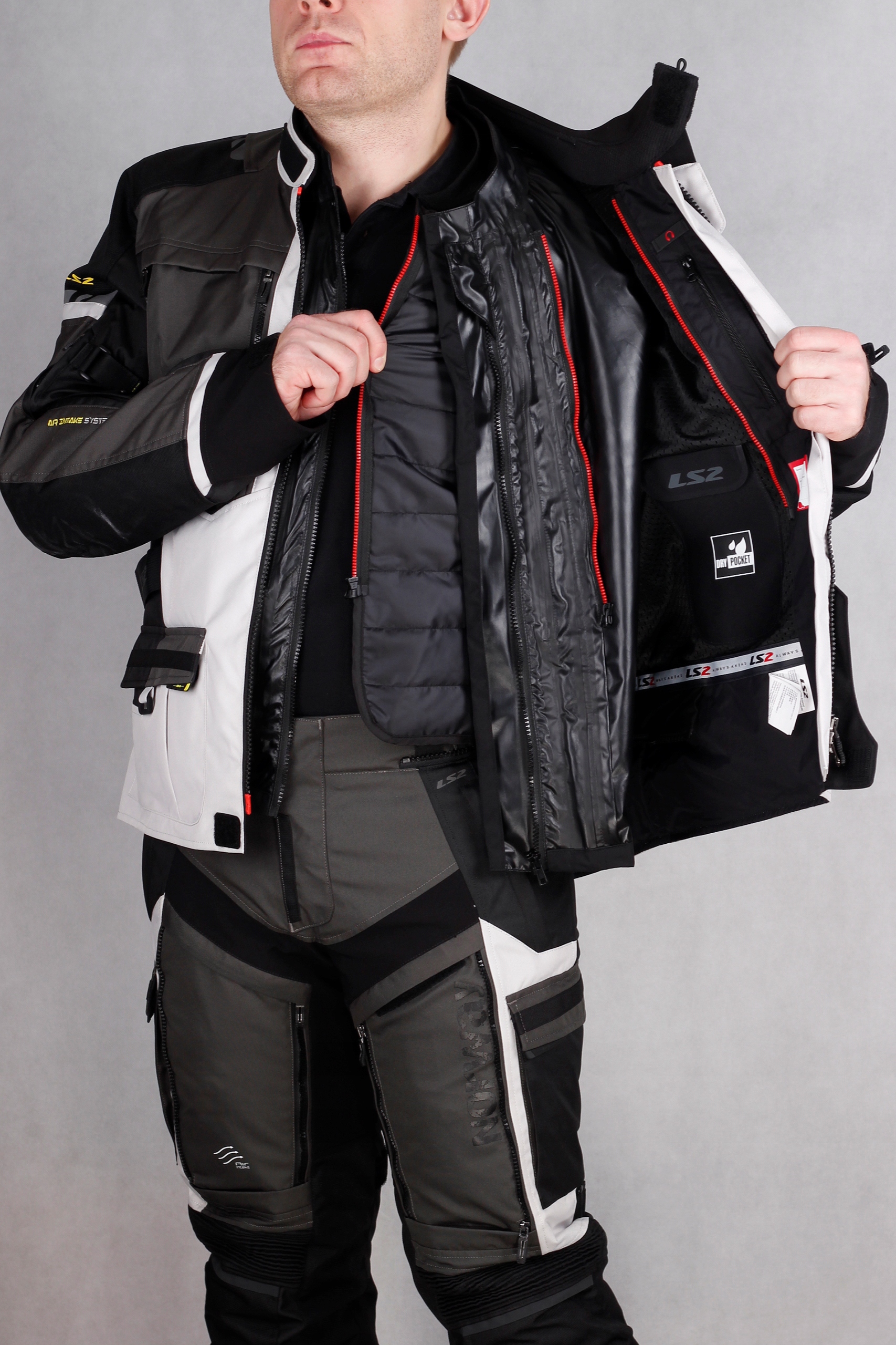Туристична водонепроникна куртка на будь-який сезон завдяки знімній термо- та водонепроникній підкладці. Оснащений сертифікованими протекторами для рук і плечей. Він має сертифікат класу АА та має високу стійкість до стирання. Велика кількість регулювань забезпечує зручну посадку по фігурі. Разом ізбрюками LS2 Norwayце створює унікальний туристичний комплект для будь-яких умов.